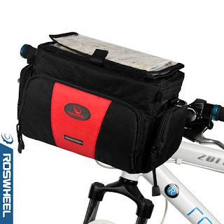 Roswheel bike handlebar bag Keep your personal items close at hand with the Handlebar Bag. Features include a large main compartment, reflective accents, and a front flap with a waterproof map case to ensure you get from point A to point B with minimal hold ups.